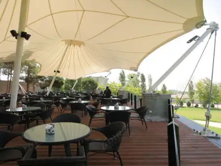 Misalnya, proyek outdoor seating kafe yang membutuhkan naungan teduh tanpa mengurangi sirkulasi udara dan cahaya.